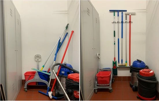Door de muurbevestiging gaat het poetsen terug gemakkelijker, jouw opbergruimte wordt overzichtelijker en netjes en je bespaart plaats!