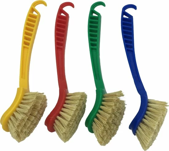 Plastic afwasborstel met natuurvezelvulling. Ideaal bestand tegen hoge temperaturen en houdt water goed vast, assorti kleuren