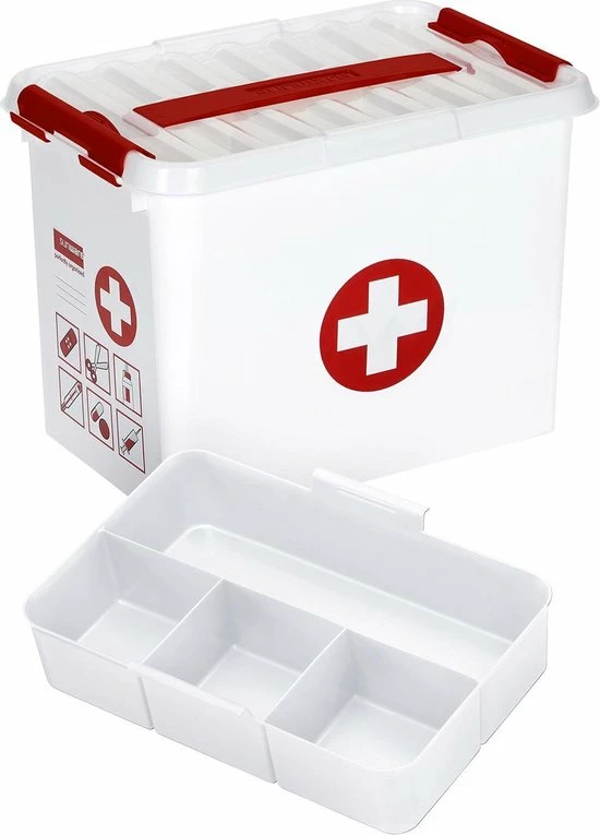 Ongelukje gehad? Geen nood. Met de Q-line EHBO box van 9L in de buurt zijn de pleisters binnen handbereik. Zeker in thuissituaties is deze EHBO doos dus de perfecte uitkomst. De box heeft een inzet met vakverdeling, waardoor je kleine en grote spullen in één doos kunt opbergen. Alles zit overzichtelijk bij elkaar. Onder in de box is ruimte voor medische spullen. Vanwege de omvang van de doos is deze ook uitermate geschikt voor professioneel gebruik.