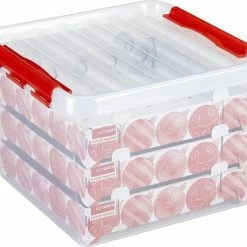 Sunware Q-line Kerstballen Opbergbox 26L – Trays Voor 75 Kerstballen – Transparant/rood