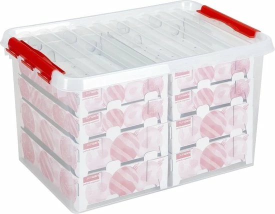 Sunware Q-line Kerstballen Opbergbox 62L – Trays Voor 116 Kerstballen – Transparant/rood