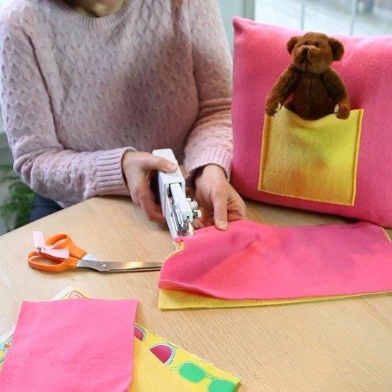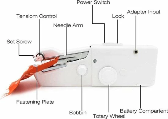 Deze handnaaimachine ligt comfortabel in de hand en is klein van formaat. Hierdoor is hij ideaal om mee te nemen op reis. De naaimachine kan worden gebruikt op vele materialen zoals denim, katoen, chiffor etc.