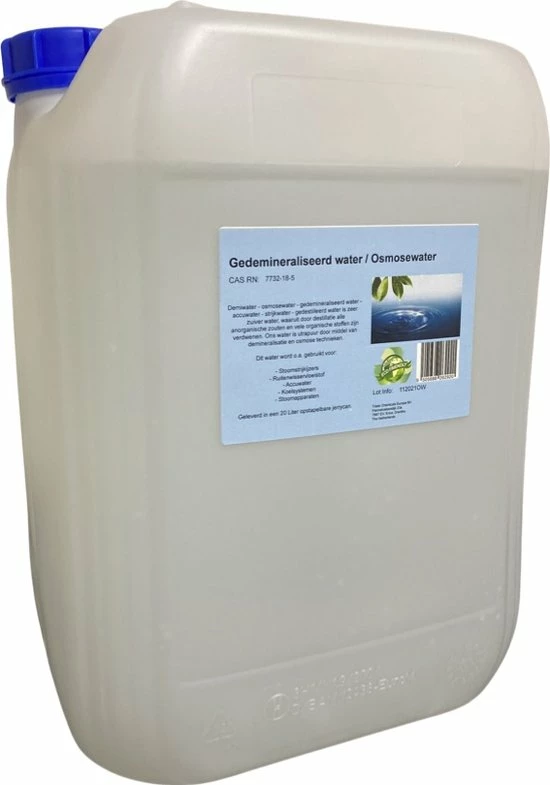 OMSCHRIJVING Gedemineraliseerd water is vrij van minerale zouten en chloor. Gedemineraliseerd water voorkomt kalkaanslag en is niet bedoeld voor medische doeleinden.