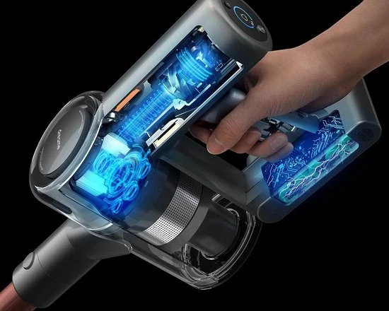 De extreem krachtige Dreame SPACE 4.0 borstelloze motor draait tot 125000 tpm wat een hoge zuigkracht van 140 AW geeft en het mogelijk maakt om zelfs de meest vuile plekken schoon te maken. Het moderne koelsysteem zorgt voor een stabiele motorwerking zonder onderbrekingen en zonder angst voor oververhitting.